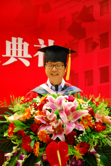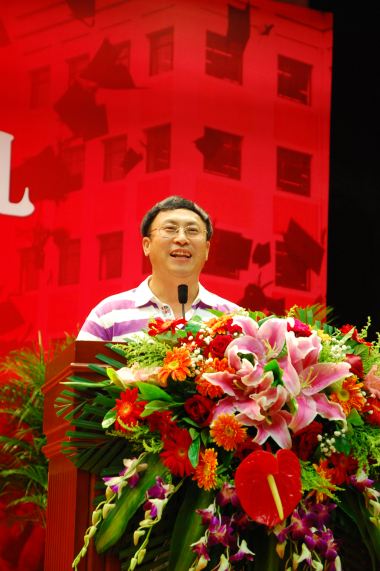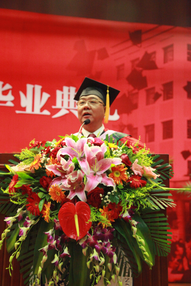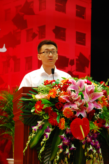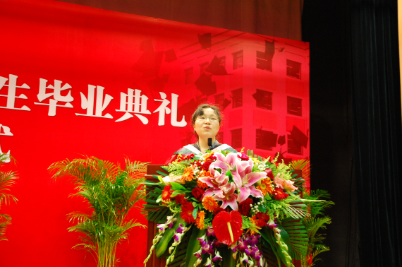 本科毕业生代表杨忠雨同学发言,用幽默诙谐的语言与同学们忆往昔、共回首,从沙河的稚嫩谈到本部的成熟,从成功的欢笑谈到成长的艰辛,表达了毕业生立足既往扬鞭前行的决心,也表达了毕业生感怀师恩永念母校的情谊。研究生毕业生代表王妲同学则回忆了两年研究生生涯的点点滴滴,表达了对学院的怀恋,对老师的感恩及对同学的不舍。在校生代表宁强同学在发言结尾清唱了一首《送别》为学长学姐们饯行,在那诚挚的歌声里,大家聆听到了在校生们对于学长学姐的不舍、感谢和祝愿,令不少在场毕业生潸然泪下。09保险精算班王天硕同学的父亲王子胜先生代表全体毕业生家长,感谢学校学院对孩子们的辛勤培育,感谢老师们对孩子们的谆谆教诲,期望孩子们心怀理想、展翅翱翔。