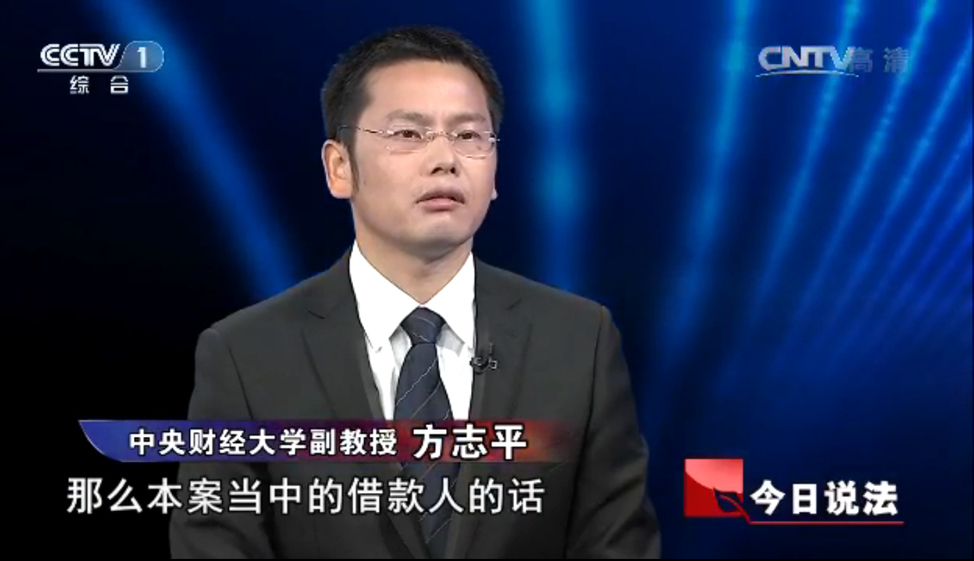 2015年5月26日,伟德官网方志平副教授作为央视一套《今日说法》与谈嘉宾,就《蹊跷的借款》涉案的民间借贷、夫妻债务、抵押和保证等法律问题进行了点评。