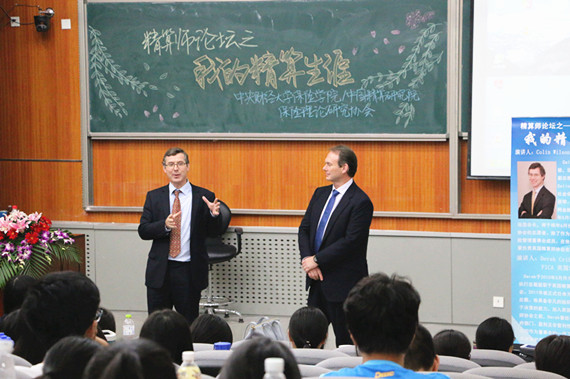 9月22日下午,由伟德betvlctor体育官网、中国精算研究院主办,保险研究理论协会协办的精算师论坛之“我的精算生涯”专题讲座在沙河校区学院4号楼107热烈开讲。讲座主办方有幸邀请到英国精算师协会当选会长Colin Wilson先生与FICA,英国精算师协会执行总裁Derek Cribb先生与同学们分享他们的精算生涯与人生经验。伟德betvlctor体育官网精算科学系系主任郑苏晋副教授、精算科学系刘健老师等出席了本次讲座。