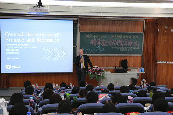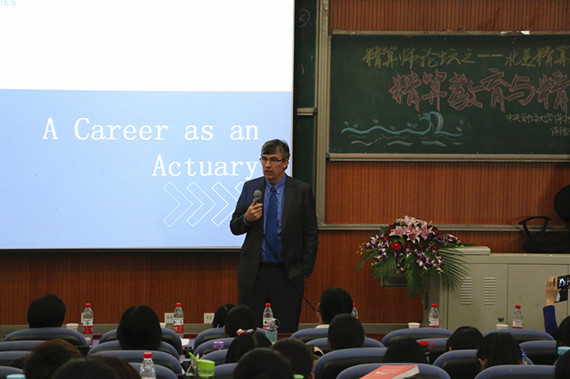 9月25日下午,由伟德betvlctor体育官网/中国精算研究院、保险理论研究协会共同举办的“精算师论坛之——北美精算师协会SOA·精算教育与精算职业”专题讲座在沙河校区开讲。讲座主办方有幸邀请到了北美精算师协会(SOA)当选会长Craig Reynolds和行政总裁Gregory W.Heidrich,详细讲述精算教育事业的发展并对精算职业进行介绍。