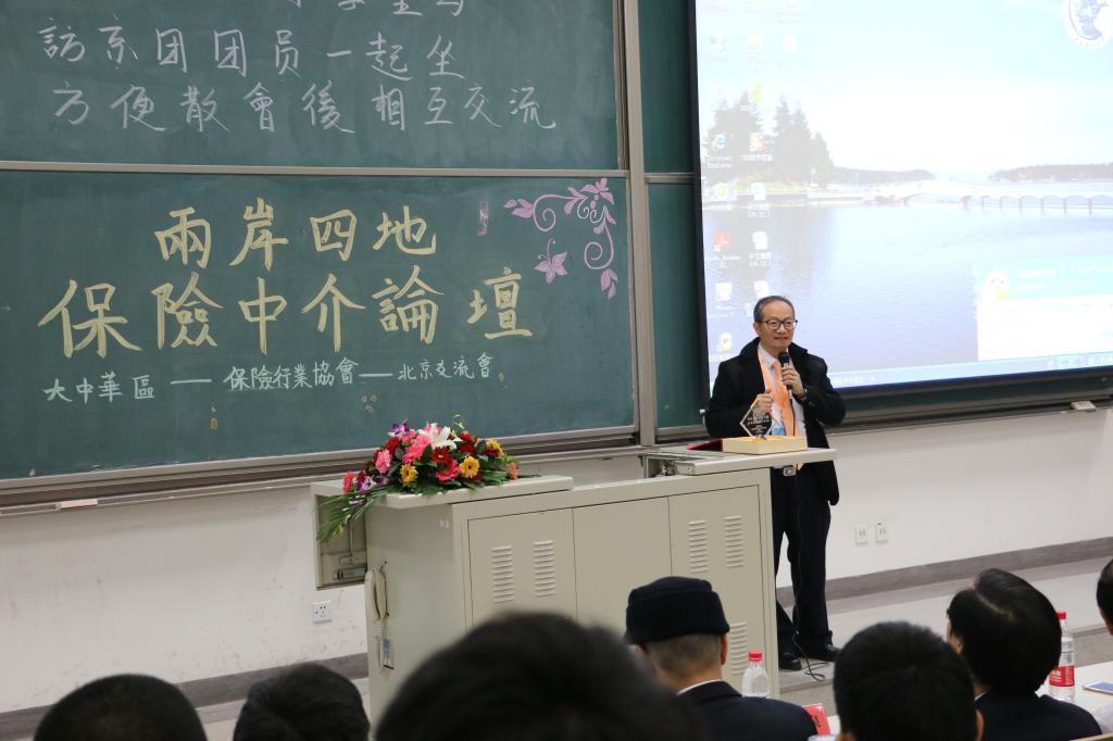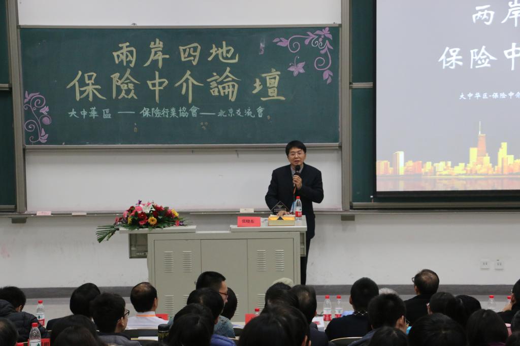 12月9日下午,由我校伟德betvlctor体育官网和香港保险中介行业协会发起,澳门保险中介行业协会、台湾中华保险服务协会和内地部分省市保险中介行业协会共同参与,由伟德betvlctor体育官网团总支、保险理论研究协会共同协办的大中华--保险行业协会北京交流会“海峡两岸暨香港、澳门·保险中介论坛”在沙河校区主教219举行。伟德betvlctor体育官网院长李晓林教授、香港保险中介行业协会会长郑国基先生、澳门保险中介行业协会副会长刘锡麟先生、台湾中华保险服务协会理事长陈瑞先生、中国保险中介协会(筹)副会长申河先生、浙江保险中介协会会长张晓东先生以及来自海峡两岸暨香港、澳门保险中介行业的40多位翘楚参加了会议。大家欢聚一堂,共同探讨交流大中华区保险行业发展近况、前景以及人才引进计划,为伟德betvlctor体育官网学子提供了一个高层次、深内涵的学习机会。本次论坛由伟德betvlctor体育官网副院长徐晓华副教授主持。
