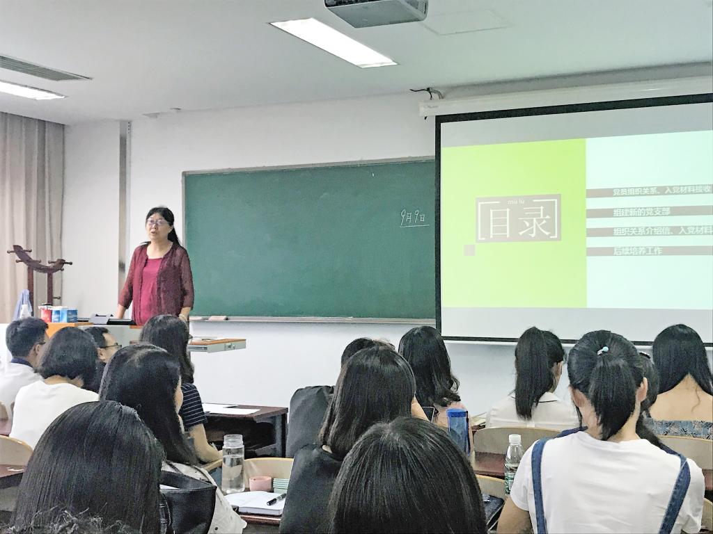 组织员包英娟为新生解读了党员党组织关系转接、党员档案审查、入党流程和党员教育管理等问题;研究生辅导员王维从教学管理等角度,细致地解读了研究生培养方案及学校最新出台的学籍及教学管理规定,并从理想信念、日常管理、奖助学政策、校史院情、学术道德、校规校纪、职业规划和心理健康、安全保卫等方面对研究生进行了细致入微的教育。
