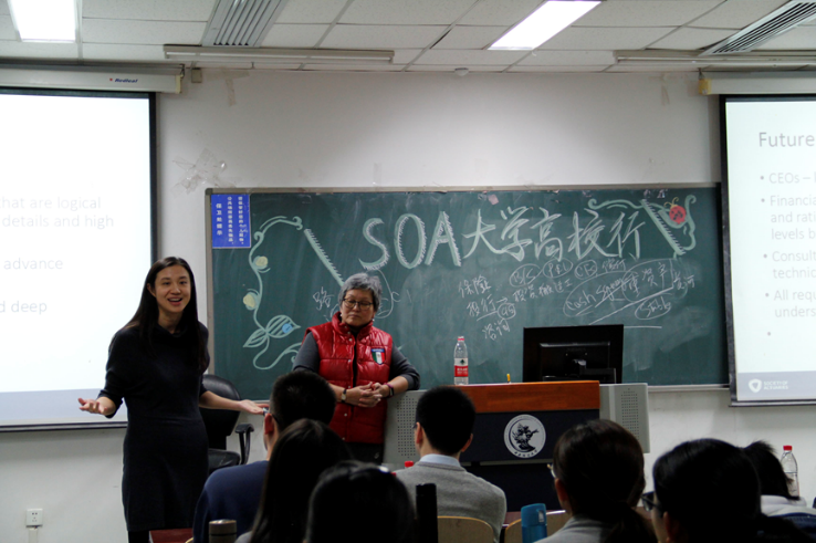2017年12月6日晚,伟德官网举办了北美精算教育与精算职业规划讲座。北美精算师协会(SOA)中国委员会主席、前普华永道亚洲保险及精算咨询服务合伙人刘淑艳女士、SOA中国区首席代表李晶鑫女士、SOA亚洲区客服代表李劢女士来到我校沙河校区,为伟德betvlctor体育官网学生做了一场精彩讲座。伟德betvlctor体育官网副院长周桦副教授出席了本次活动,讲座由17级金融学类1班的欧展良同学主持。