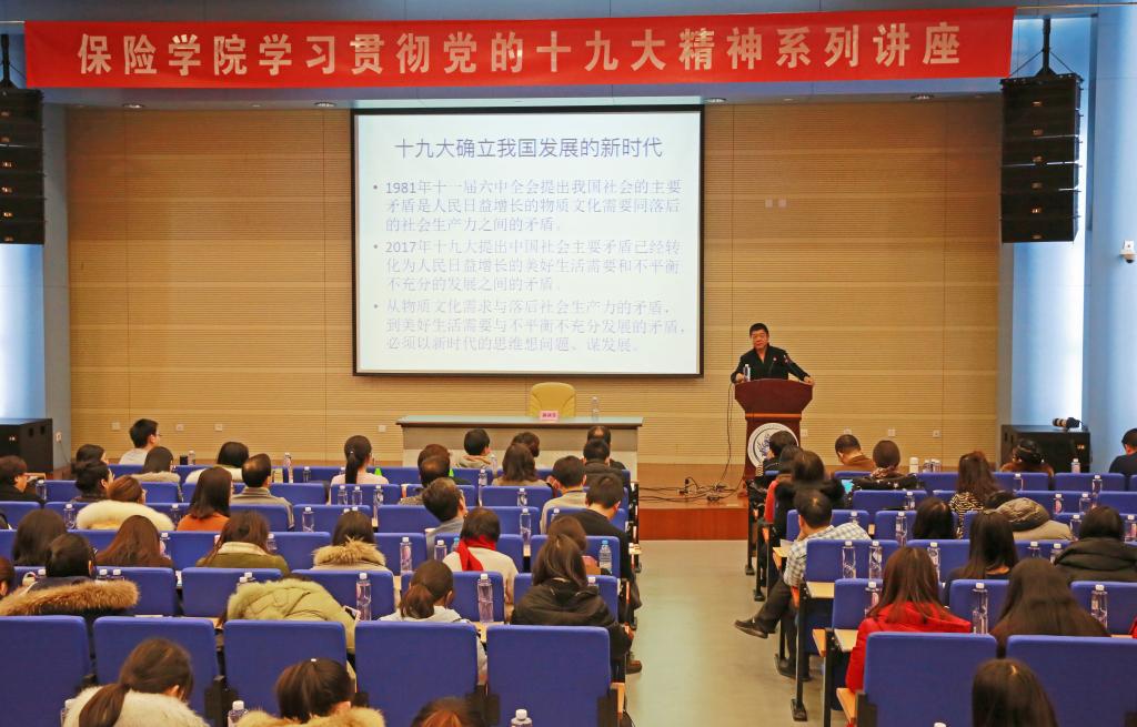 为了深入学习贯彻党的十九大精神,伟德betvlctor体育官网党委积极组织开展线上线下学习、外出实地参观以及“学习党的十九大·每日一课”微党课等创新性学习活动。为了使理论学习更加紧密联系实际,加深学院师生对党的十九大报告与保险行业发展之间密切关系的理解。12月20日下午,伟德betvlctor体育官网博士生导师、郝演苏教授为学院师生带来一场题为“新时代保险行业的发展机遇”的精彩讲座。讲座由伟德betvlctor体育官网副院长徐晓华主持。