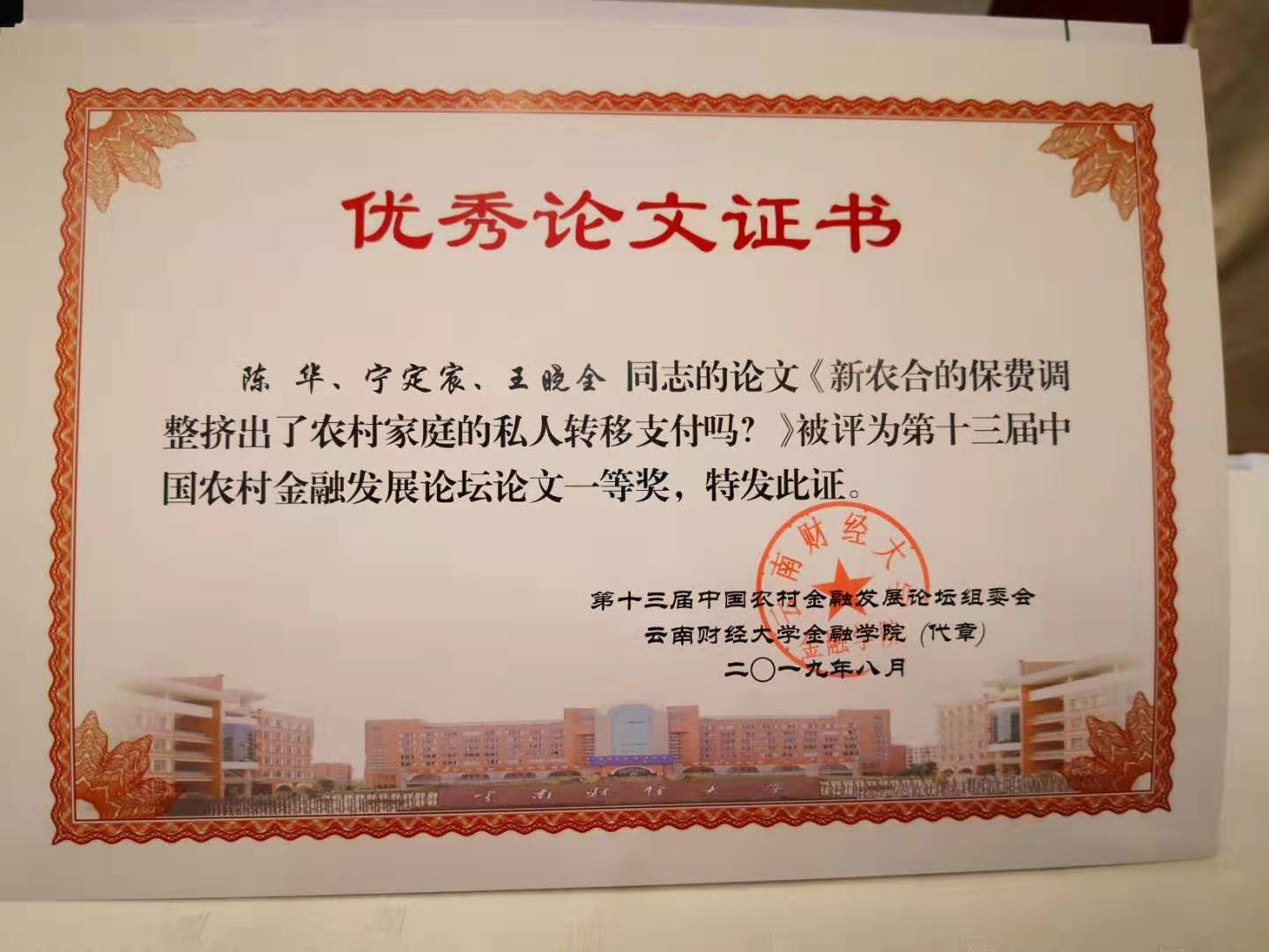 | 陈华副教授和宁定宸等合作的论文荣获一等奖 |