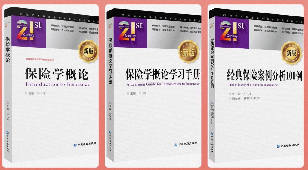 许飞琼老师主编的《保险学概论》教材是伴随着《保险学概论》课程的建设而配套形成的,参编人包括李晓林、郝演苏、陶存文、褚福灵等具有丰富教学经验的知名教授。该教材致力于开启学生内在潜力和学习动力,培育学生的爱国情怀与保险专业理论与技能,通过借鉴吸收保险学界和业界已有研究成果、编写人多年的教学经验以及保险行业的新知识技术而完成。《保险学概论》及其配套教材《保险学概论学习手册》《经典保险案例分析100例》已经入选“21世纪本科金融学名家经典教科书系”。