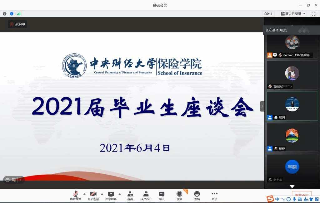 5月20日下午,学院在沙河校区西区主教403举办了研究生就业经验座谈分享会,邀请了7位2021届学长学姐为2020级学弟学妹们分享了求职与就业经验。5月30日上午,由伟德betvlctor体育官网2018级、2019级和2020级精算学研究生共同举办的研究生毕业生就业经验交流座谈会,通过腾讯会议的方式在线上进行。本次会议邀请到6位优秀的应届毕业生,分享了他们在暑期实习、秋招春招、学术科研等方面的经验。两次座谈会涵盖直保、再保、咨询、资管等多类公司的求职经验分享,满足了们多样丰富的需求,为大家未来求职道路指引了方向,也更加坚定了毕业生们矢志不渝、立志报国的信念!