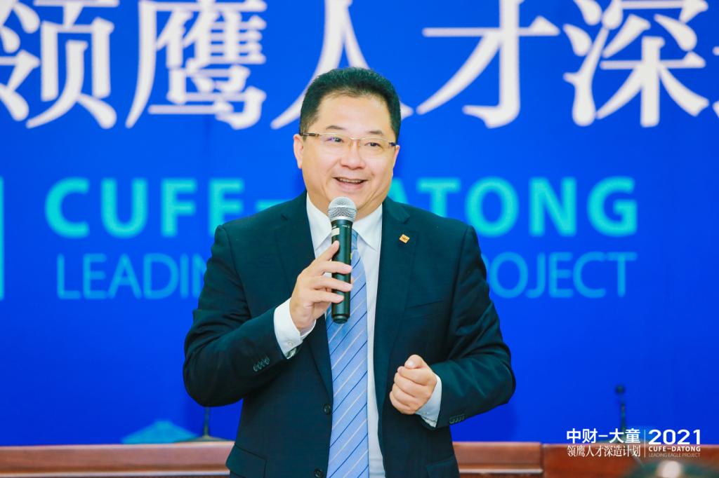 2021年10月19日上午,大童-中财领鹰人才深造计划培训班开班典礼在我校学术会堂702举行。伟德betvlctor体育官网院长李晓林、党委书记王颖、副院长周桦、大童保险销售服务有限公司高级副总裁王戈出席典礼。