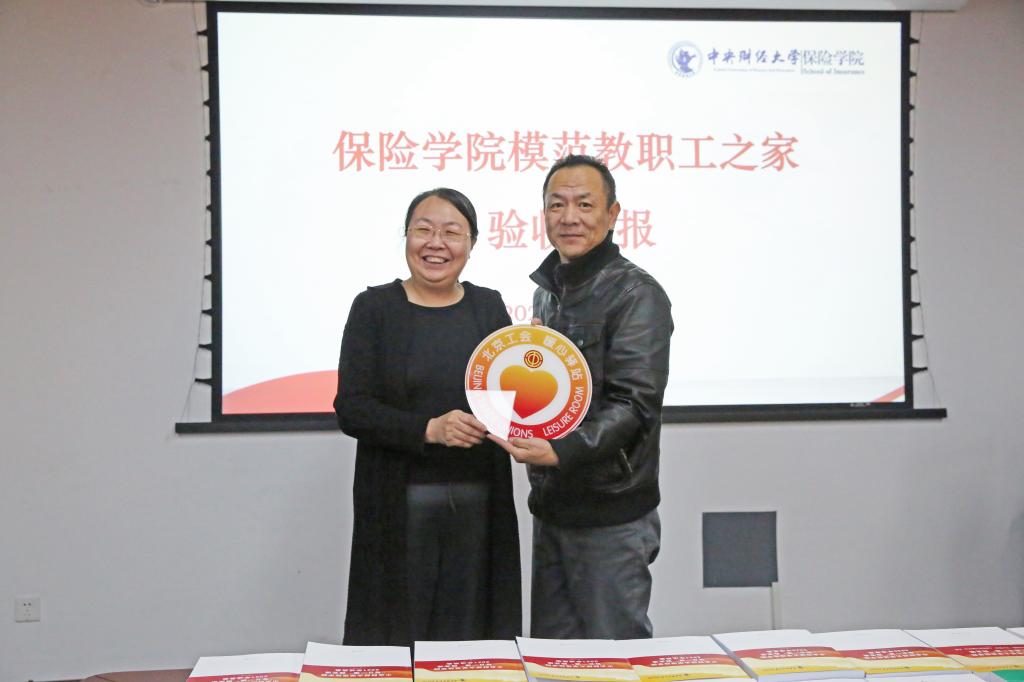 校工会常务副主席贺小海向伟德betvlctor体育官网授牌“北京市先进教职工小家”