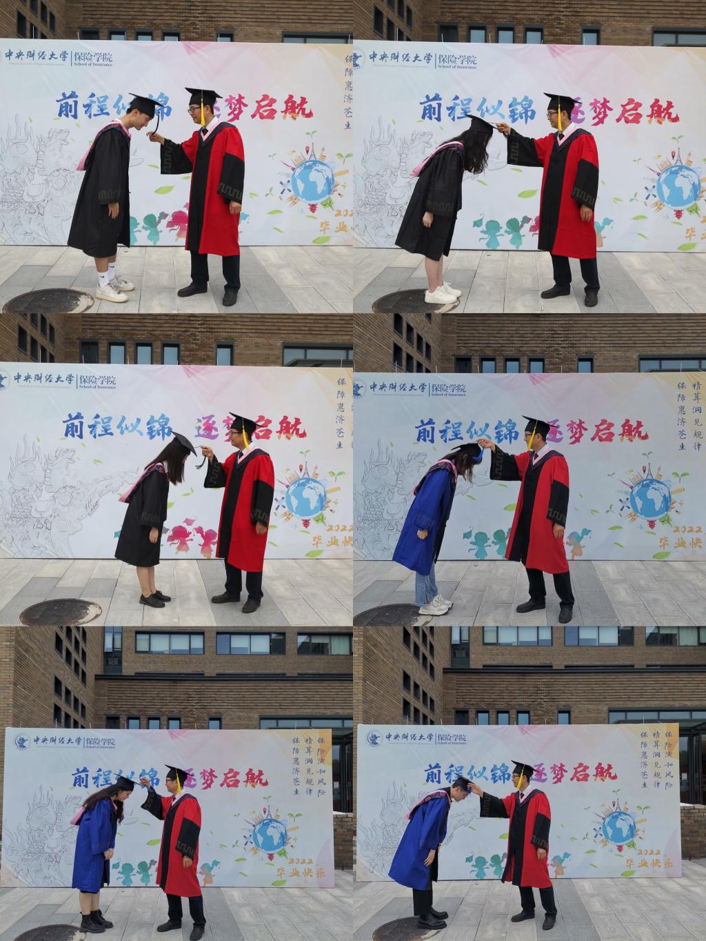 在学院13号楼下“前程似锦 逐梦启航”的毕业祝福背景板下,伴着欢快的音乐,学院为返校毕业生举行“拨穗礼”,院长李晓林教授为返校毕业生拨穗正冠、颁发学位证书并合影留念,每位同学都记录下了自己人生中这重要一刻。骊歌唱罢,拨穗礼成;生逢盛世,肩负重任。忆不尽的峥嵘岁月,说不完的情意绵绵。祝同学们毕业快乐,青春如歌!