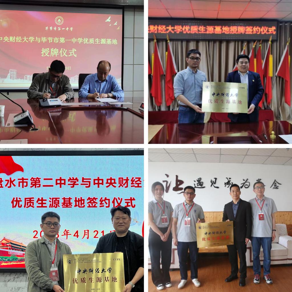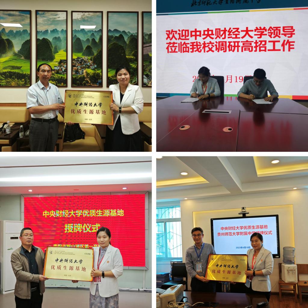 4月17日—4月21日,贵州招生组先后赴兴义八中、遵义市第四中学、北京师范大学贵阳附属中学、贵州师范大学附属中学、贵州省毕节梁才学校、贵阳市观山湖区第一高级中学和六盘水市第二中学,与主要校领导进行座谈,交流双方学校基本情况、高校招生情况,并进行了优质生源基地授牌活动。