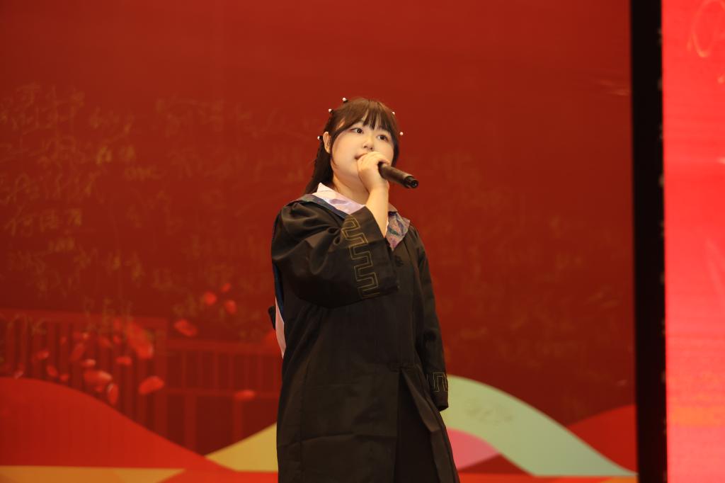 随后,由戴雨静同学带来了歌曲《岁月神偷》,我们慨叹于时光飞逝,曾经在校期间的一幕幕似乎还近在眼前,却已经成为过去……伴随着悠扬的歌声,结业典礼正式开始。