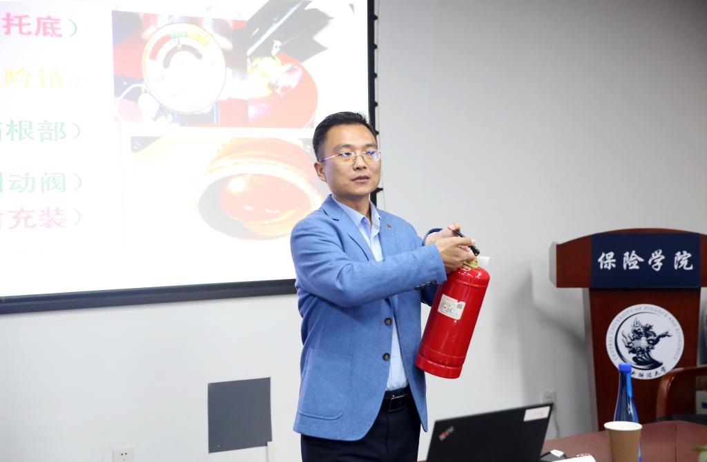 接着,邵长柱老师讲述了火灾现场的逃生与自救、火灾的预防和扑灭等技能,现场演示了灭火器的正确使用方法。针对在宿舍居住的同学们,邵老师重点强调了宿舍吸烟、乱接插线板、人走不断电、手机长时间充电等火灾隐患,并通过真实火灾事件进一步阐述宿舍内不安全行为带来的危害。