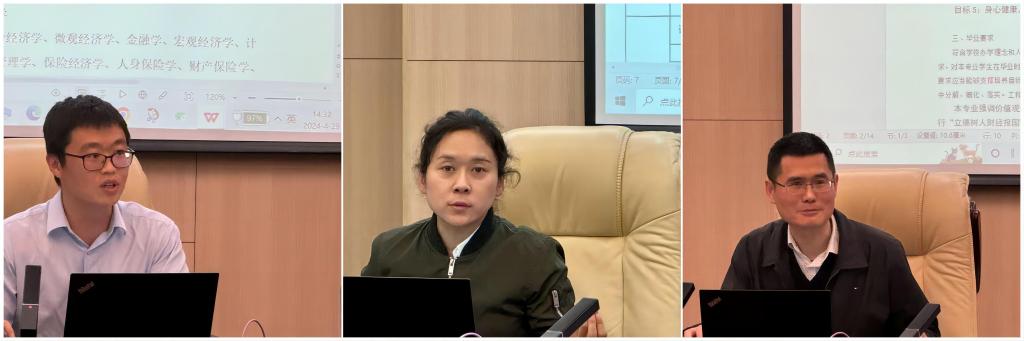 马冰、刘敬真及张建伟三位系主任分别介绍了保险学、精算学以及劳动与社会保障三个专业2024年培养方案的修订情况及主要内容。他们着重从专业介绍、培养目标、毕业要求、主要核心课程、学分分配以及实验实践要求等几个方面进行了说明。