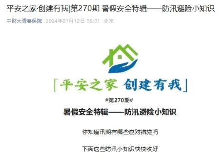 此外,学院面向师生开展多种形式的安全教育活动,伟德betvlctor体育官网“平安之家·创建有我”系列活动推出“暑假安全特辑”,覆盖宿舍安全、留校安全、交通安全、实习实践安全、电信网络安全等多个方面,为师生提供安全生活小常识,共筑安全思想防线。