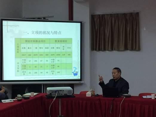 报告中,李西建教授鼓励青年教师一定要多阅读文献,在阅读中发现问题,同时结合专业和地域文化艺术特点,选择应用型的研究课题。并强调,学术上没有“天才”之说,唯有刻苦的钻研业务,才能由教书匠转化成高校教师。在填写申报书时,李教授强调指出,一定要严格遵守“3-5-2”评审规则,即选题占评分的30%,论证占评分的50%,现有研究基础占20%,并对选题的理论、现实、学科建设意义及中外学界的研究状况综述进行了翔实解说,就论证的框架、结构和具体所指及研究方法做了阐释,对前期研究成果在申报书中的意义做了说明。他以项目评审人的身份指出:申报表是项目能否立项的关键,建议大家确信:1、成功的基础依赖对学术问题的提炼;2、成功的条件需要研究的深入和细致;3、成功的保障必须对文本反复打磨修改。