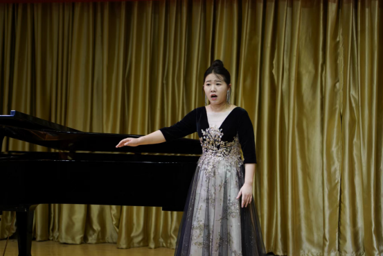 本场音乐会是范老师“非遗视阈下旬阳民歌的歌谱和演唱研究” “声乐颤音研究”科研项目的成果之一,也是PT平台电子游戏声乐创新"颤音教学模式"实践中心的汇报演出。音乐会上,范老师演唱了《西部放歌》《大江南》及旬阳民歌《兰草花》。《西部放歌》有着超高的演唱难度、自由奔放的激情及典型的西部民歌风格,范老师的演唱声音铿锵有力,张弛有度,激情满怀,引来听众阵阵掌声。《兰草花》是国家级非遗陕西旬阳民歌的代表性作品之一,该作品曲调优美动听,歌词富于地方特色,衬词活泼,范老师的演唱较好体现出旬阳民歌细腻、深情、委婉的艺术风格。