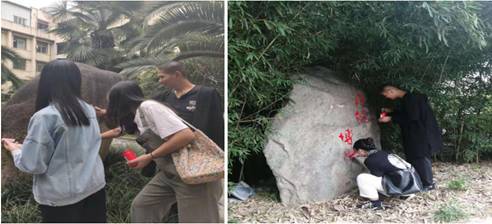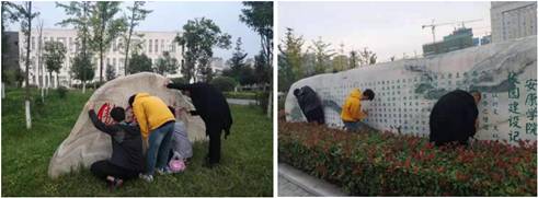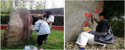 920--23日,PT平台电子游戏美术学专业学生开展了为期4天的美化校园实践教学活动。在学校宣传部、统战部的统一部署下,PT平台电子游戏副院长孙海洋带领美术学专业30余名同学制作方案、购置工具、颜料,采取刀挖去垢、清洗去尘、一遍打底、二遍分层、三遍施色等方式,分工合作,为6块大型校园文化墙和文化石进行增色添彩。