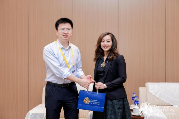 周桦院长与英国精算师协会新任主席Kartina Tahir Thomson女士互赠纪念品