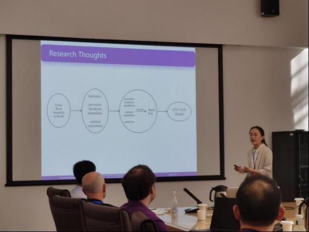 2022级精算学硕士研究生张龄立:听完王艺蓉同学的学术报告,我对她在生命周期模型研究方面的细致工作和深入分析感到十分钦佩。王同学通过生命周期模型,深入揭示了居民健康行为的内在机理,从个体健康行为的角度探讨了健康不平等的产生过程,并基于结构化估计方法,具体分析了中国城乡健康不平等问题。她的研究表明,收入差距、主观偏好差异和基本医疗保险制度差异是造成城乡居民医疗支出不平等的重要原因,而收入差距则是造成城乡居民预防保健支出不平等的唯一原因。她的研究不仅在理论上为健康不平等问题提供了新的解释框架,还在实践中提出了针对性的政策建议。例如,增加农村居民收入、完善农村居民养老保障体系,有助于同时减轻医疗支出不平等和预防保健支出不平等;提高农村居民医疗保险保障水平,则有助于缩小医疗支出不平等。这些建议具有重要的现实意义,为政策制定者提供了宝贵的参考。