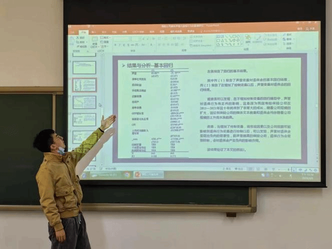2024年4月8日,郭海若就参会论文在学校二教111教室和在线做了院内汇报,与大家分享了参会心得与研究成果。