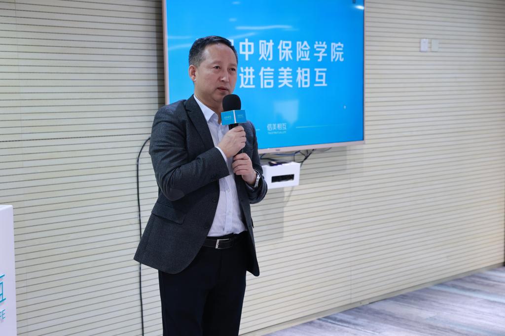活动伊始,信美人寿相互保险社创始人、董事长杨帆对伟德betvlctor体育官网师生的到来表示热烈欢迎。他详细介绍了信美相互的成立背景和发展历程,并深入解读了“信”“美”二字的深刻内涵:“信”即“信任地托付”“美”即“美好的愿望”。他表示,相互保险的核心理念是会员间的互信与互助,这种模式有助于更好地维护会员利益,实现长期稳定的发展。