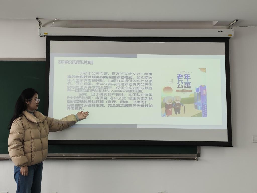 12月9日,李一帆报告了题为《关于“老年公寓”在中国发展现状的调研及未来发展方向的分析》的调查报告。她负责的团队以宏观视角分析我国老年公寓目前存在的问题,以微观视角运用层次分析法得出对北京市老年公寓内老年人幸福感影响较大的五个指标,并从两个方面给出发展建议。