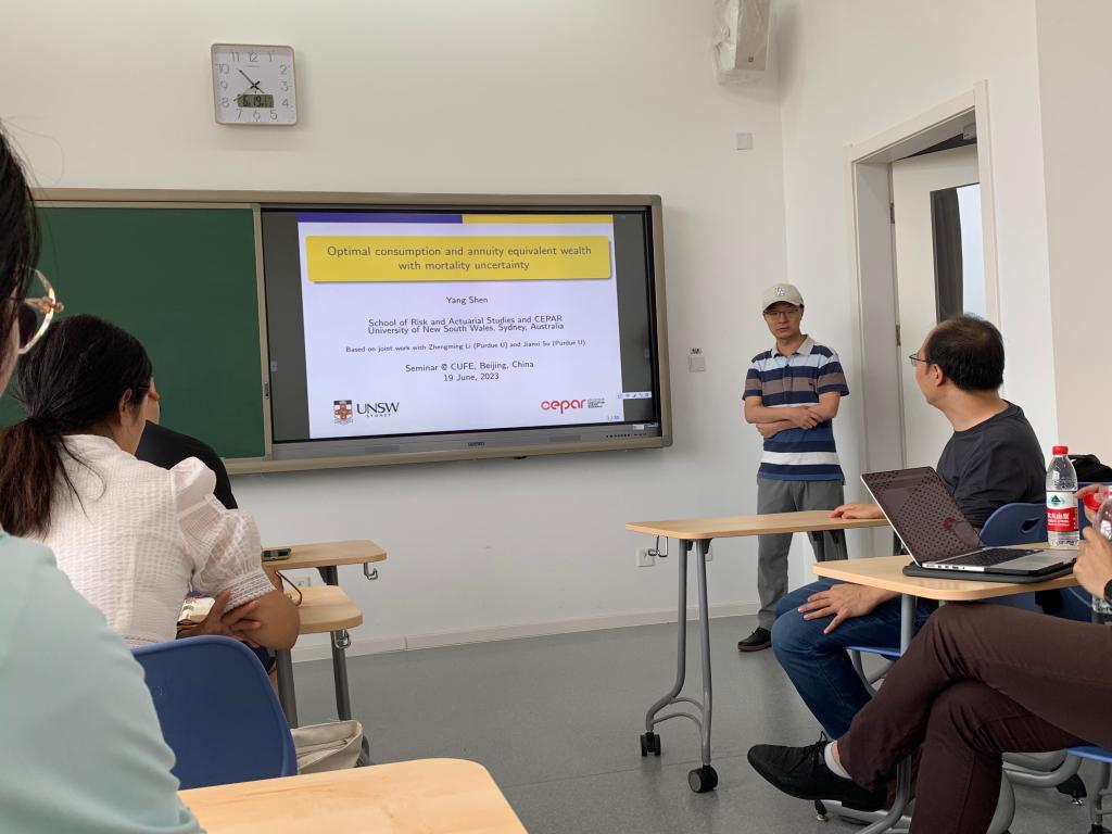 2023年6月19日上午,应中国精算研究院池义春研究员和郑敏副研究员邀请,对外经济贸易大学伟德betvlctor体育官网祝伟教授、澳大利亚新南威尔士大学风险与精算系沈洋副教授以及中国人民大学财政金融学院郑家昆博士在伟德betvlctor体育官网沙河校区二教111教室给伟德官网师生作了精彩的学术报告。