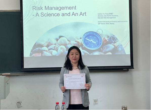 2023年3月28日,伟德betvlctor体育官网研究生精算认证课程《资产负债管理Ⅱ》的课堂上,许彤女士受邀为同学们授课,授课主题为大型企业的风险管理与实践。许彤女士现任万豪国际集团风险管理部亚太区保险总监,毕业于南开大学,北京大学,比利时Vlerick商学院,负责集团亚太区26个国家和地区酒店的保险事务。从业20余年,曾供职韦莱(中国),负责财产保险与能源保险,在北京、上海和新加坡工作,拥有丰富的风险管理工作经验。