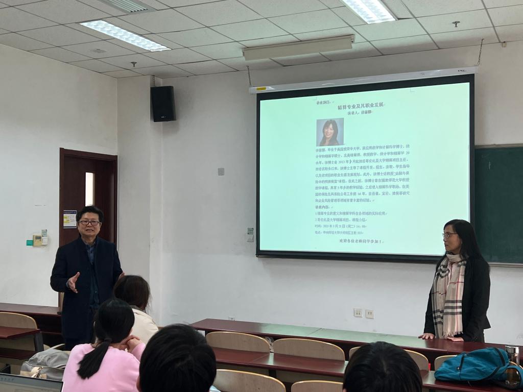 随后,徐丽娜女士向在座的各位同学展示了精算人才的职业发展道路。她提到,精算人才的传统就业方向主要集中在保险公司与咨询公司,而随着全球经济不确定性增大以及科学技术的不断发展,精算人才在金融机构与高新企业的风险管理、定价销售、战略管理岗位也正发挥着显著优势。这得益于精算人才对于资产负债管理的准确把握、对于数据分析的驾轻就熟、对于各类金融产品现金流的敏锐洞察,因此精算人才的职业发展道路是非常广阔的。