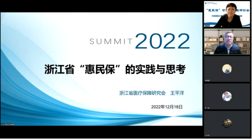 第一位演讲人是浙江省医保研究会副会长王平洋教授,他以浙江惠民保的亲身推动和参与实践者的身份,介绍了浙江省惠民保的发展现状。王教授首先介绍了浙江省惠民型商业补充医疗保险取得的成效及其“两低七高”的特点,即低门槛、低保费,高保额、高续保率、高便捷性、高赔付率、高减负率、高公益性。王平洋教授指出,“浙里惠民保”也面临着诸多挑战,例如投保人群的总体受益率偏低,健康人群投保率偏低,产品设计总体比较粗糙等。王教授总结说,在惠民保不断探索过程中,得益于浙江政府勇于尝试、保险基础较好、群众认可程度高,因此综合表现良好,浙江省将在惠民保领域继续前进。