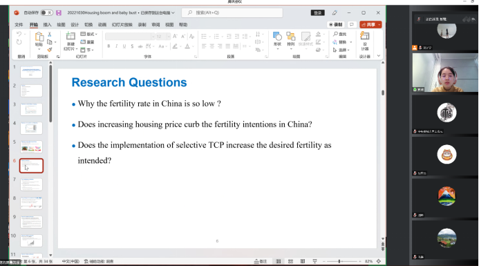 第一位汇报论文的学者是来自清华大学经济与管理学院的彭鹭博士,她汇报的题目是“Do Housing Booms Reduce Fertility Intentions? Evidence from the Selective Two-Child Policy in China”,该研究关注了房价对于人们生育率的影响。汇报结束后,来自伟德betvlctor体育官网的刘子宁老师进行了点评并且就相关问题和彭鹭博士进行了交流。