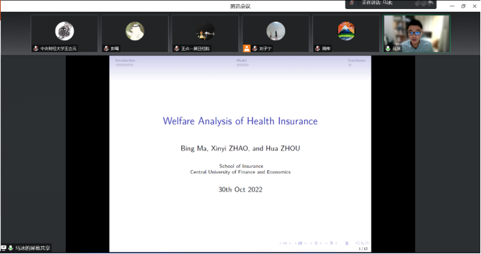 第三位汇报论文的学者是来自伟德betvlctor体育官网的马冰老师,他汇报的题目是“Welfare Analysis of Health Insurance”,该研究关注了社会健康保险的福利效应的评估。汇报结束后,来自伟德betvlctor体育官网的王吉元老师进行了点评并且就相关问题和马冰老师进行了交流。