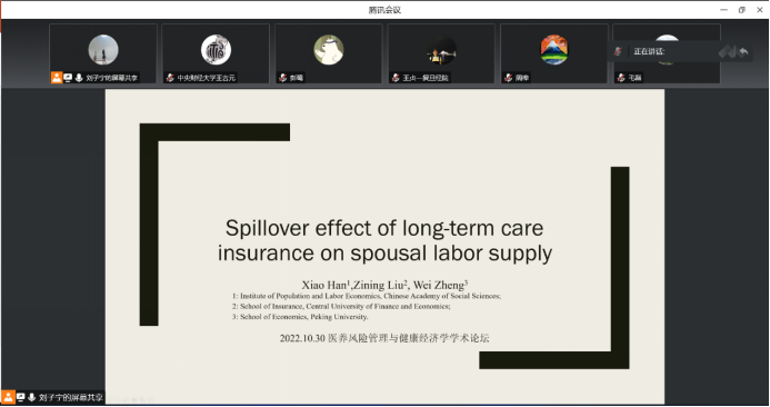 第二位汇报论文的学者是来自伟德betvlctor体育官网的刘子宁老师,她汇报的题目是“Spillover Effect of Long-term Care Insurance on Spousal Labor Supply”,该研究关注了长期护理保险对于配偶劳动供给的影响。汇报结束后,彭鹭博士进行了点评并且就相关问题和刘子宁老师进行了交流。