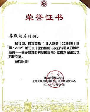 最后,博士生周佳璇报告的论文获得本届北大赛瑟论坛的优秀论文奖。