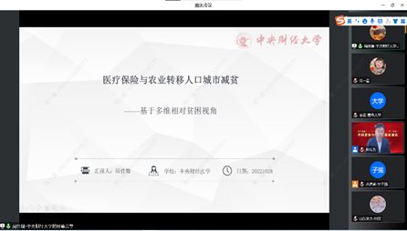 10月28日下午,在学术分论坛上,伟德官网4名教师与8名研究生分别在分会场报告了8篇学术论文。伟德官网陈华教授和王沁雨报告了合作论文《The Impact of Urban-rural Health Insurance Integration on Labor Supply——Evidence from Rural China》,王丽珍副教授和博士生张简荻报告了《疫情冲击对保险业系统性风险的影响研究——基于跨境差异视角的实证分析》,博士生王煜正报告了《“舐犊”抑或“反哺”?——长期照护保险的代际效应》,杨再贵教授和博士生秦少鹏报告了《基金收支平衡目标下的退休年龄调整机制》,博士生徐睿和孟辉研究员报告了合作论文《生存预期对于中老年人商业医疗保险需求的影响——基于感性与理性视角》,陈华教授和杨晓旭报告了合作论文《The Impact of Medical Insurance on Family Financial Transfers》,陈华教授和杨熠飞报告了合作论文《Does Public Health Insurance Crowd Out Private Health Insurance? ——New Evidences from a Quasi Experiment in China》,博士生周佳璇报告了《医疗保险与农业转移人口城市减贫——基于多维相对贫困视角》。对于上述8篇论文,论坛点评人与主持人均给予了细致的点评并与线上师生进行了热烈讨论。此外,各位参会作者还担任论文点评人,对分论坛其他学者的论文进行认真点评与讨论。