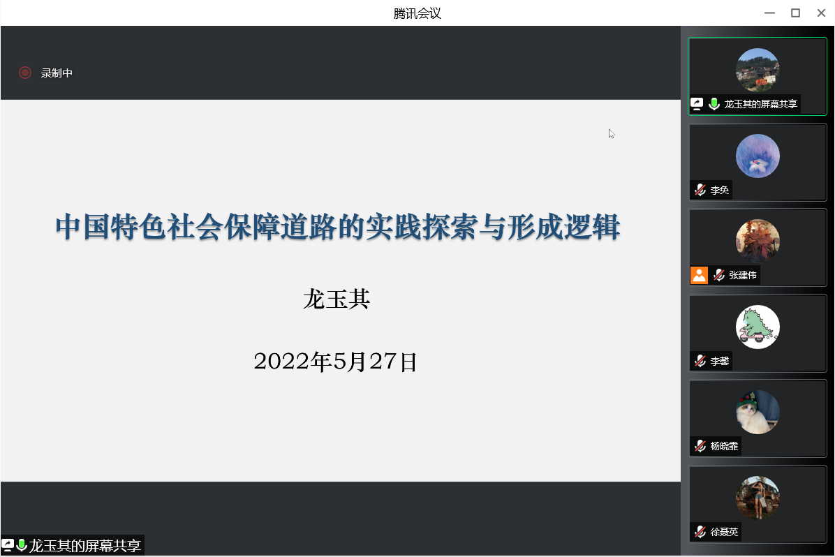 2022年5月27日下午,“中国特色社会保障道路的实践探索与形成逻辑”讲座在腾讯会议平台顺利举行。本次讲座邀请到了首都师范大学管理学院副院长龙玉其副教授作为主讲嘉宾,由伟德betvlctor体育官网劳动与社会保障系系主任张建伟副教授主持。校内外师生40余人参加了讲座。