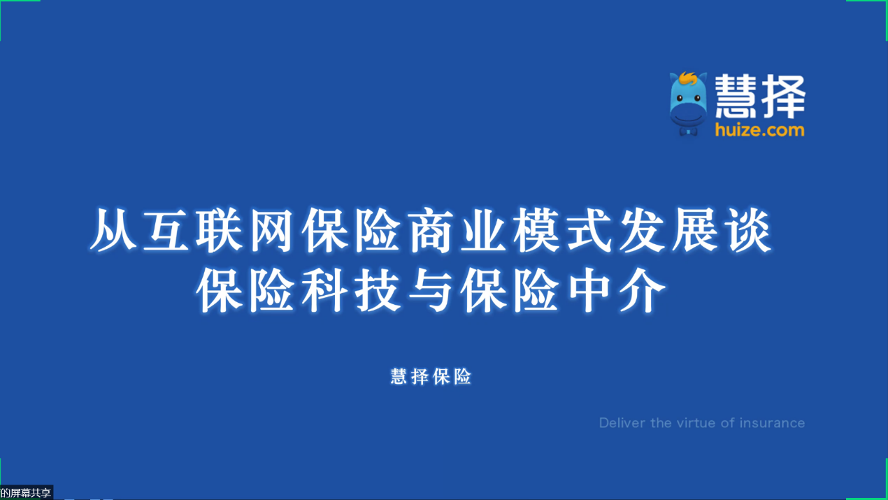 2022年4月28日,《保险科技》第九次课程《保险科技与互联网保险》由马潇先生主讲。马潇先生现任慧择保险战略发展部总监、慧择奇点保险研究院首席研究员,曾任职于太平洋财险和平安财险,担任过核保分析师、企划分析师、渠道业务管理等职位。马潇先生拥有澳大利亚新西兰保险学会资深会员资格,是深圳市保险同业公会及深圳市中介行业协会财产保险专家库专家,曾在诸多保险专业期刊发表论文多篇,专著《中国保险业自主创新》主要执笔人,深耕保险行业前沿研究、互联网保险发展和保险数字化等领域多年。
