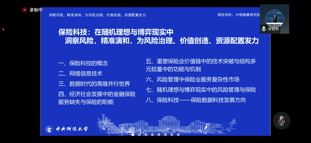 2022年3月3日,《保险科技》第一次课程由伟德betvlctor体育官网院长李晓林教授主讲,题为《保险科技:在随机理想与博弈现实中洞察风险,精准演和,为风险治理、价值创造、资源配置发力》。李晓林院长以物联网、大数据、区块链、人工智能、云计算等新兴科学技术为切入点,全面深入地讲授了保险科技的诞生背景、发展现状、应用场景以及独特职能等。并且结合实际,强调保险科技对于重塑保险业价值链的关键作用。课程最后李晓林教授回答了课程负责人周桦教授提出的“科技引入如何改变保险业对经济社会发展的作用”这一问题,课程在热烈的讨论中圆满结束。