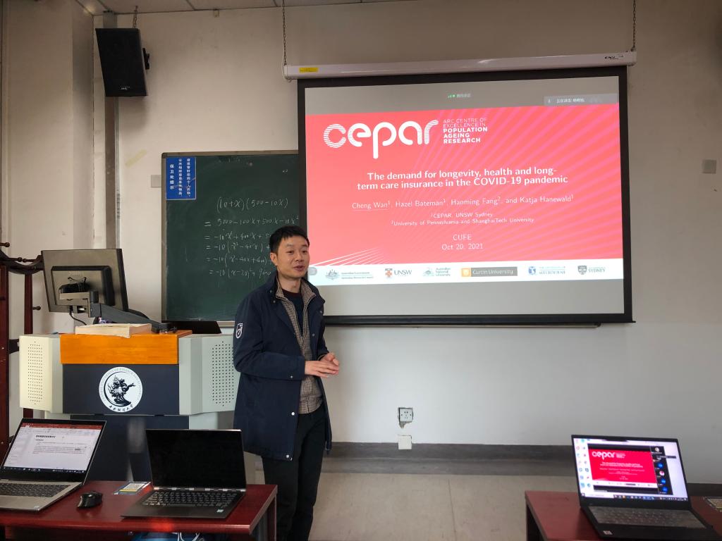 2021年10月20日,北京市“双一流”共建项目学术讲座暨风险管理与保险论坛(2021年度)第17讲于伟德betvlctor体育官网沙河校区主教207召开。本次讲座的主讲嘉宾是澳大利亚人口老龄化研究中心(新南威尔士大学)万程研究员,讲座主题为《The demand for longevity, health, and long-term care insurance in the wake of the COVID-19 pandemic》。报告由伟德betvlctor体育官网刘子宁助理教授主持,伟德betvlctor体育官网和北京工商大学多位教师和学生通过线下方式或通过腾讯会议线上方式参加了讲座。