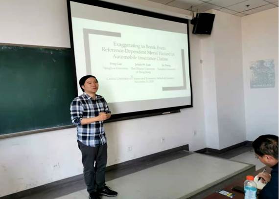2020年11月13日上午,清华大学经济管理学院郑捷副教授应伟德betvlctor体育官网邀请,在我校沙河校区主教405室以“Exaggerating toBreak-Even: Reference-Dependent Moral Hazard in Automobile Insurance Claims”为主题做了专题学术讲座。讲座由伟德betvlctor体育官网毛磊副教授主持,伟德betvlctor体育官网周桦教授、陈华副教授、马冰博士以及我校部分本科生和研究生参加了讲座。