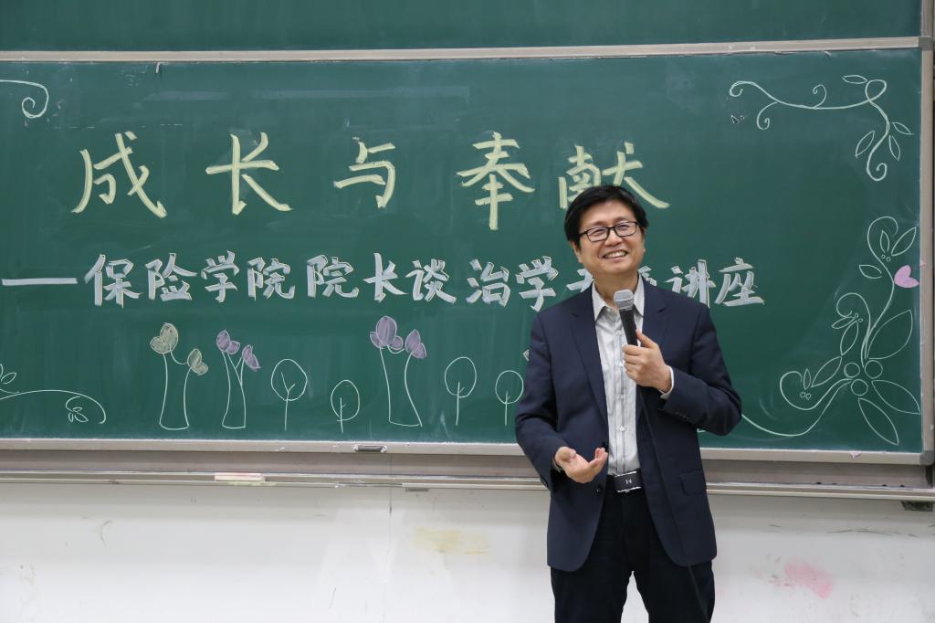 讲座伊始,李晓林教授为同学们阐释了成长与奉献不可分割的道理,教导同学们唯有在成长中奉献,在奉献中成长,才能做到学以致用、解行并重,由此展开了此次关于治学的交谈。李老师通过介绍古人谈治学的三种境界,点出了治学道路的孤独艰辛和坚持不懈的意义;为同学们剖析赌徒心理,警示大家的同时介绍了精算模型和风险防范的重要性以及精算、保险等专业的实用性。