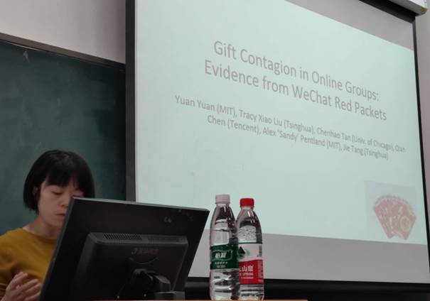 2020年9月30日下午,清华大学经济管理学院刘潇副教授应伟德betvlctor体育官网邀请,在我校沙河校区主教104室以“Gift Contagion inOnline Groups: Evidence from WeChat Red Packets”为主题开展讲座。伟德betvlctor体育官网毛磊副教授主持了讲座,伟德betvlctor体育官网周桦教授、王丽珍副教授、经济学院李彬副教授以及我校部分本科生和研究生参加了讲座。