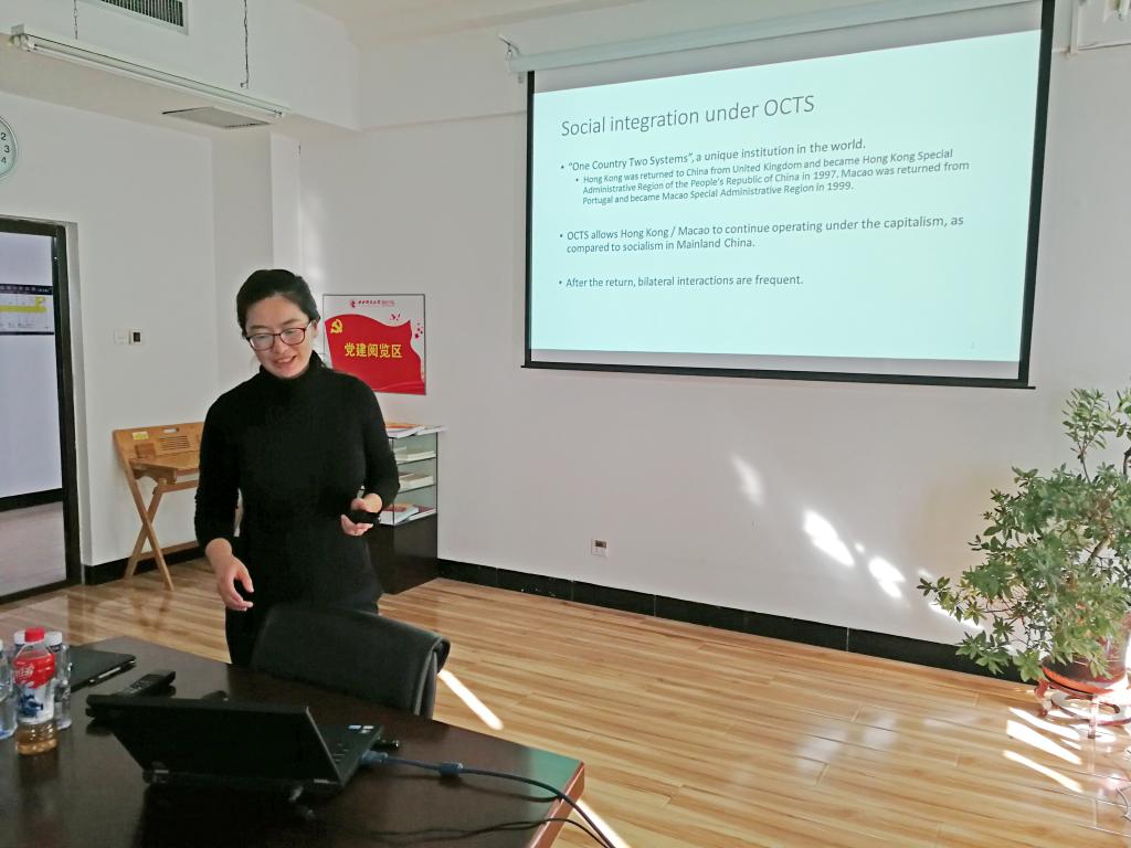2019年11月14日下午,伟德betvlctor体育官网中国经济与管理研究院教授于丽教授应伟德betvlctor体育官网邀请,在我校学院南路校区主教1407室以“Identity andCooperation under One Country Two Systems”为主题开展讲座。伟德betvlctor体育官网毛磊副教授主持了讲座,伟德betvlctor体育官网副院长周桦副教授、心理学院孙玲副教授、吕杰妤博士和人力资本与劳动经济研究中心杨帆征助理教授、李珊助理教授以及部分本科生和硕士生参加了本次讲座。