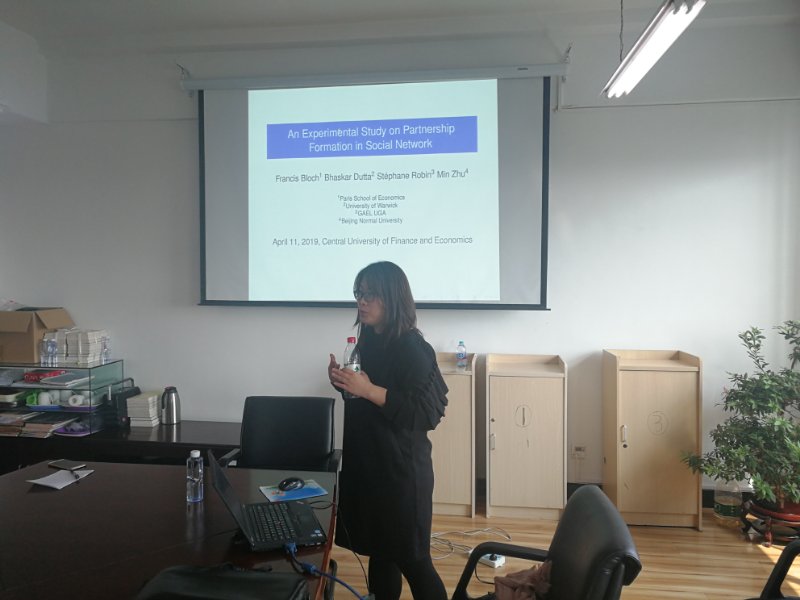 2019年4月12日下午,北京师范大学经济与工商管理学院讲师朱敏博士应伟德betvlctor体育官网邀请,在我校学院南路校区主教1407室以“An experimental study of partnership formation in social networks”为主题开展讲座,伟德betvlctor体育官网毛磊副教授主持了讲座。