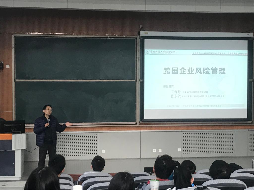 2019年3月28日下午,由伟德betvlctor体育官网举办的【龙马奋进·保家讲坛】暨校庆70周年系列讲座之《企业风险管理》在沙河校区学院楼四号楼107报告厅隆重开讲。本次讲座邀请到张东贺先生和王鲁丹先生为伟德betvlctor体育官网本科生做精彩报告,伟德betvlctor体育官网徐晓华副院长、保险系主任郭丽军老师以及马冰老师也出席了本次讲座。