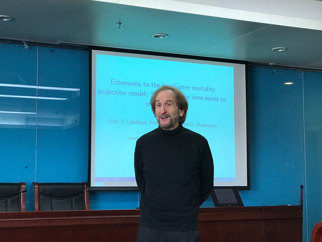 受伟德betvlctor体育官网引智项目(教育部学校特色项目《巨灾风险管理与再保险课程体系建设聘请外教特色项目》)支持,以色列海法大学Udi Makov教授于2016年12月11日至12月24日访问了伟德官网,并于12月22日上午举办了一次关于长寿风险的高水平讲座。