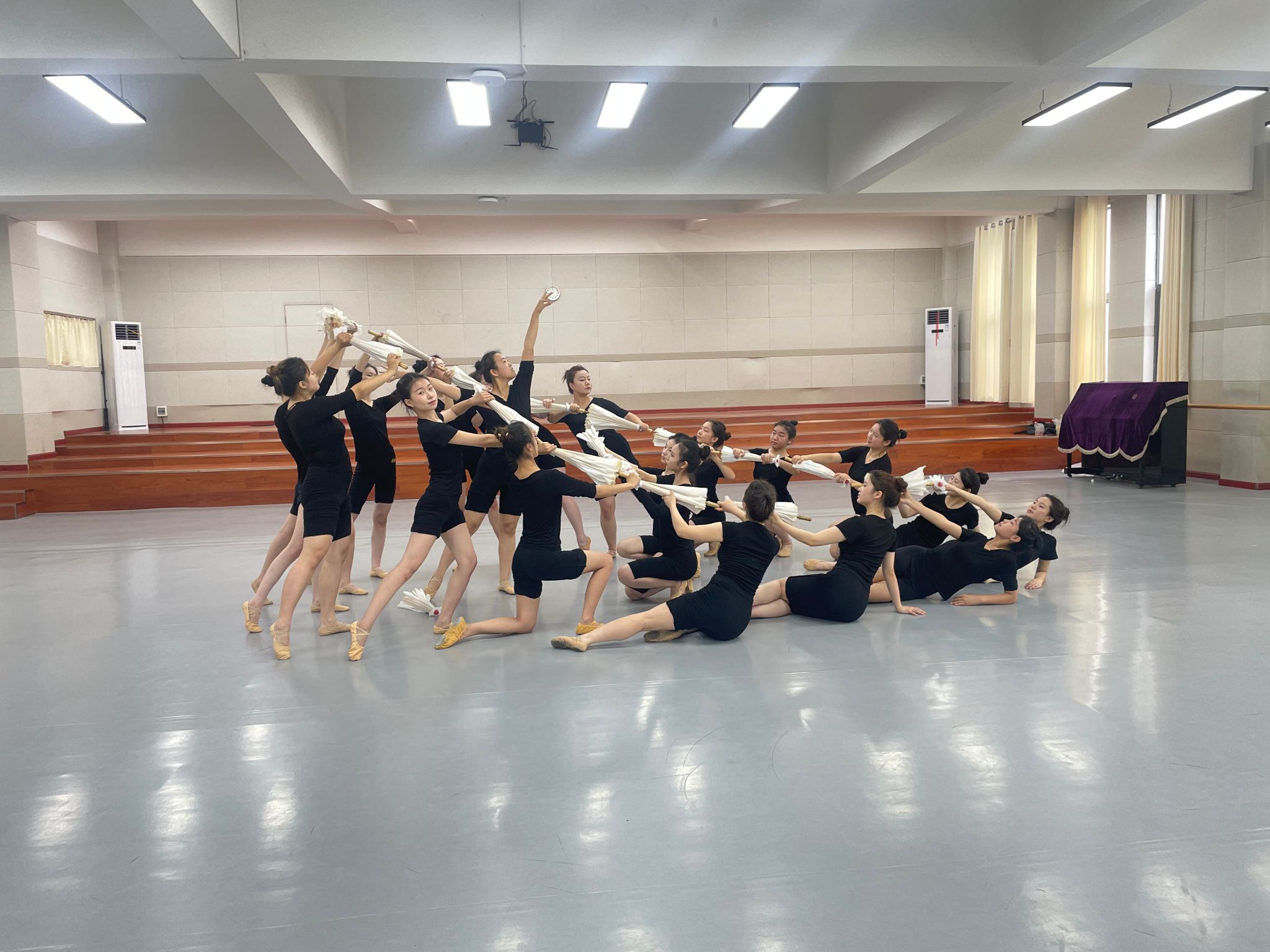 学生在舞蹈排练厅排练节目
