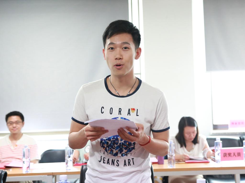 “优秀学生党员”代表:2016级保险学、社保、精算学研究生联合党支部党员王圆圆同学发言