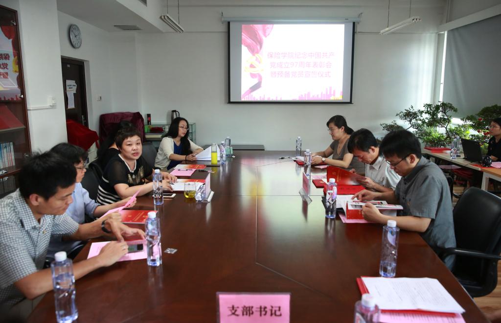 为庆祝中国共产党成立97周年,全面总结学院党建工作取得的成效、亮点和经验,大力宣传先进典型,积极学习先进、创建先进,6月27日,伟德betvlctor体育官网举行了庆祝中国共产党成立97周年表彰座谈会暨预备党员宣誓仪式。伟德betvlctor体育官网党委书记王颖、党委副书记张楠楠、副院长周明、组织员包英娟、党委委员刘宁静,纪委委员杨德齐及党支部书记、受表彰对象、预备党员参加了此次活动。会议由院党委书记王颖主持。